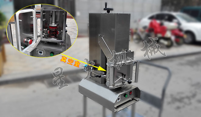 1、采用開啟式全密封真空室結構(專利號200920195601.7:),配置小功率真空泵即可實現高真空度包裝。